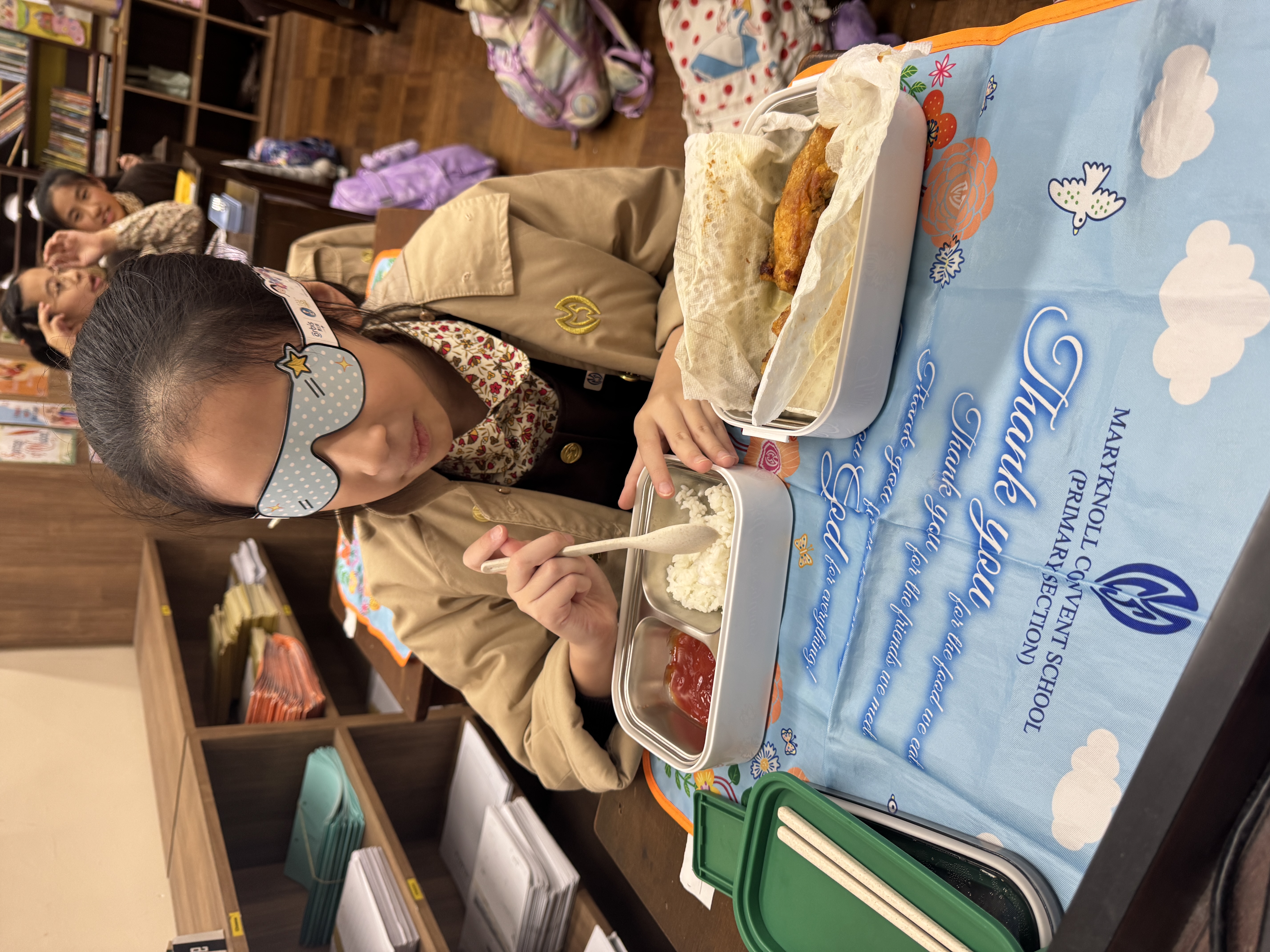Upon the invitation of teachers, students put on a blindfold throughout their entire meal, where they experienced the challenges of visually impaired first handedly, as well as understood the importance of vision as a sense. Students were then encouraged, at the end of the meal, to share their thoughts and learning experience.