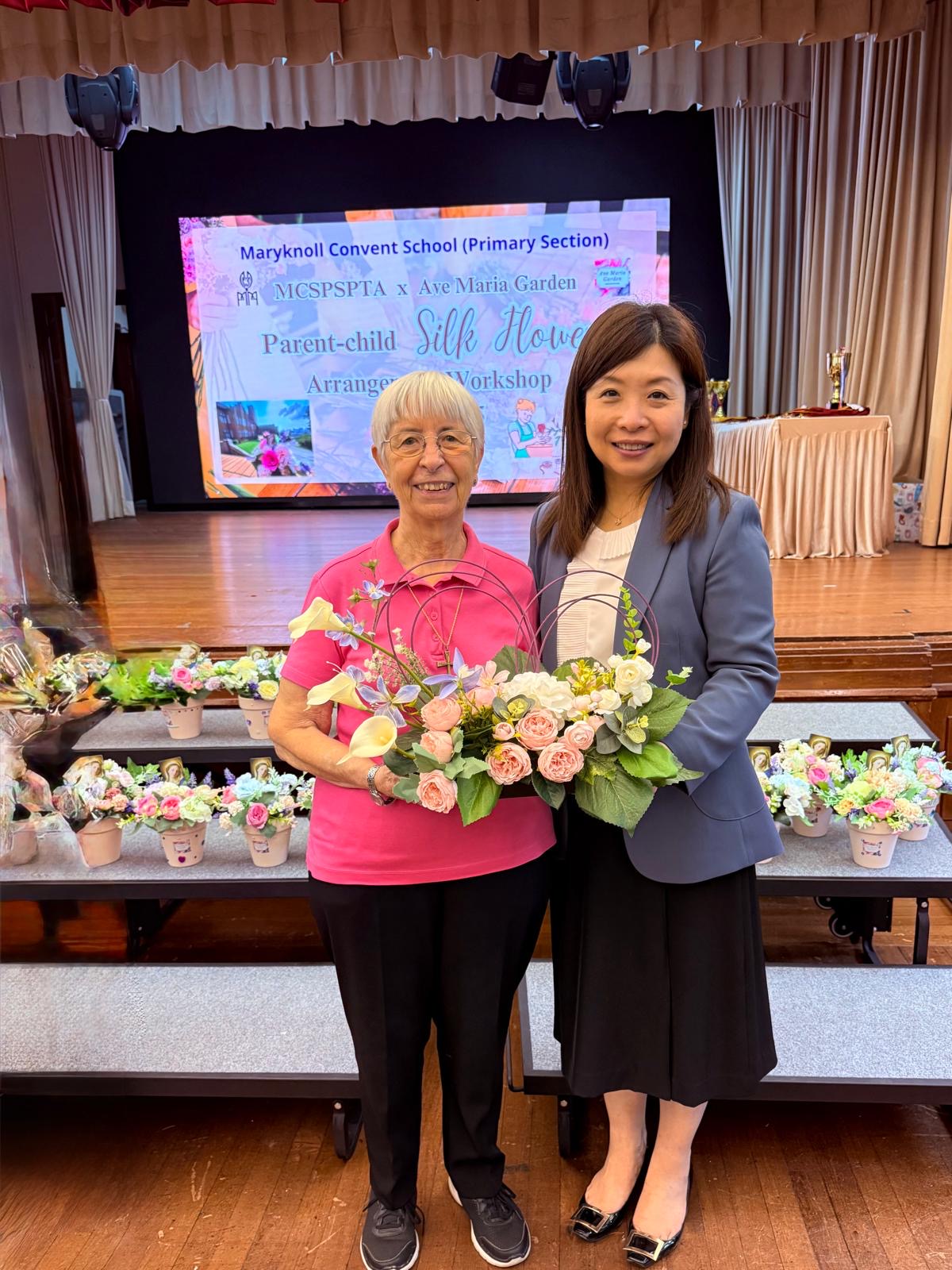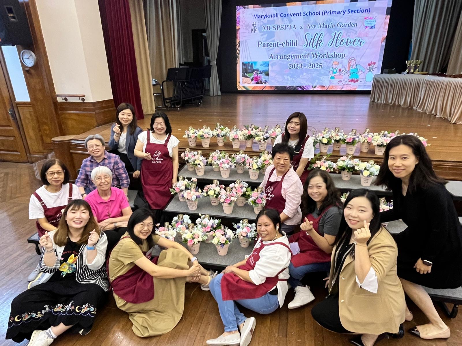 Guided by dedicated tutors from Ave Marie Garden, families worked together to create elegant silk flower arrangements, where each family crafted two flowerpots – one to take home, and the other was donated to an elderly home in efforts to spread love as part of Maryknoll’s centennial “100 Acts of Kindness” initiative.